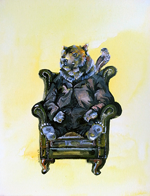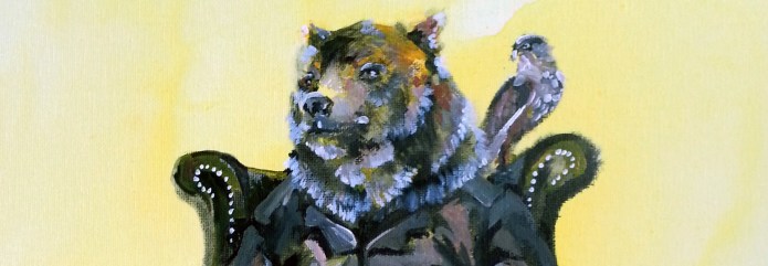 This was one of the first paintings where I started using pure raw acrylic medium without any dilution. The classy pairing of the bear and falcon was a spontaneous choice. The effect came out quite well.