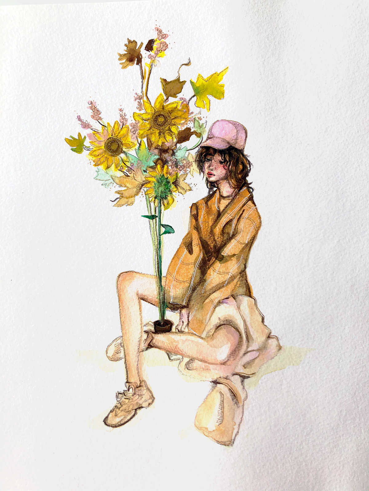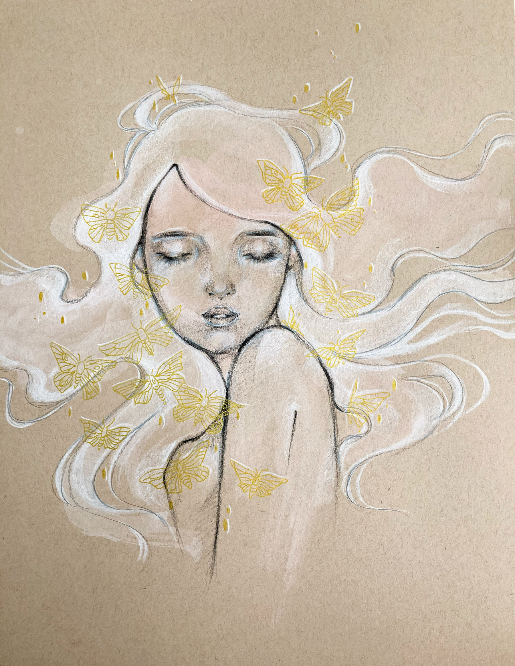 Gouache, oil pencil and gold archival ink on tan toned paper