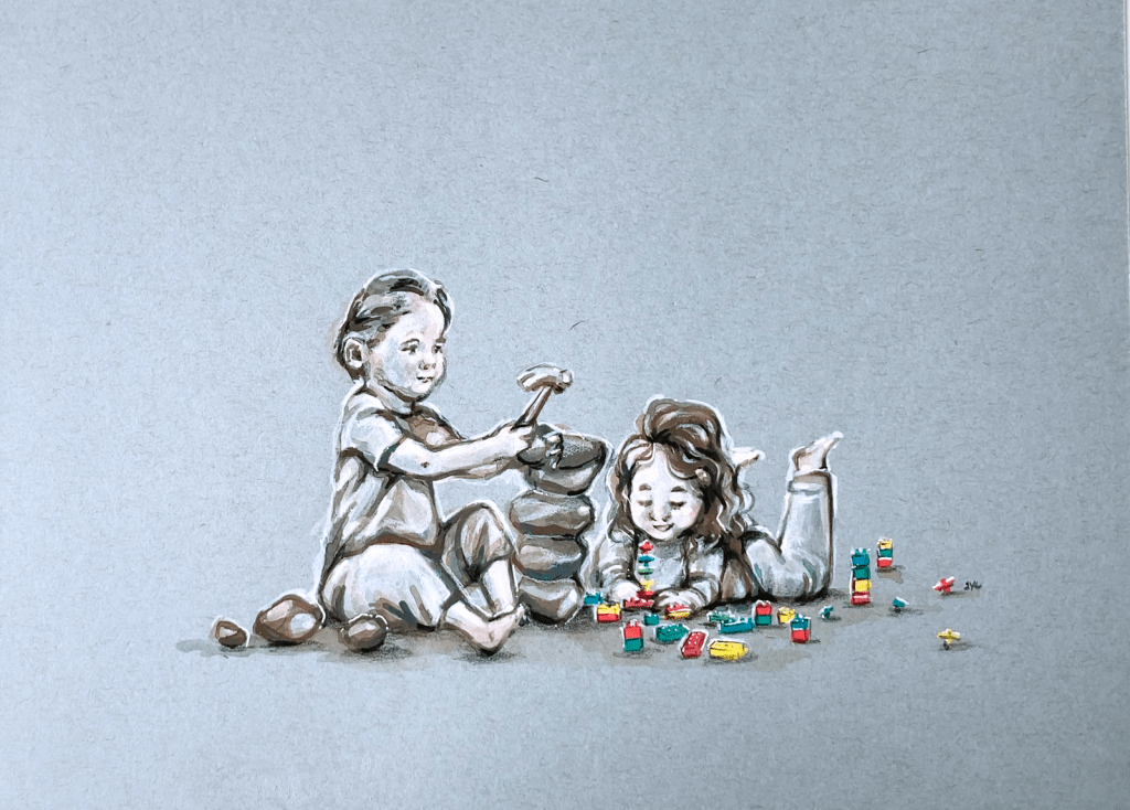 I love the ideas of two children playing with blocks, but from polar opposite backgrounds. Despite their background and circumstances, they both share a sense of awe and creativity to build something new- to look at the world with a sense of curiosity.