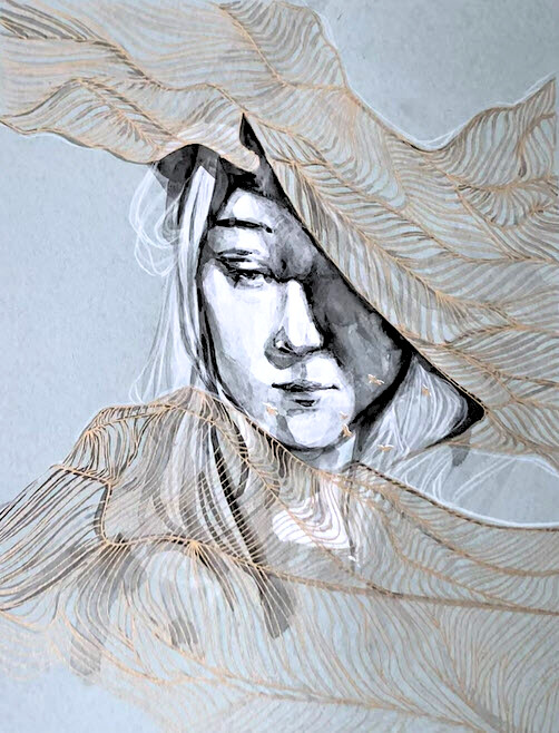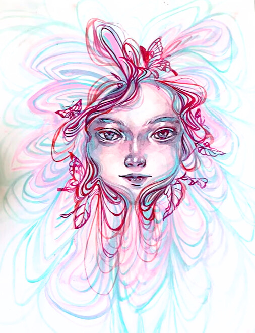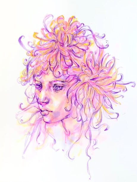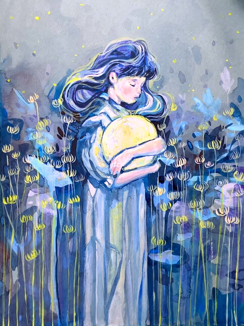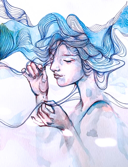 This piece appeared to me as I was playing around with the gouache medium. I love how fluid the art turned out.