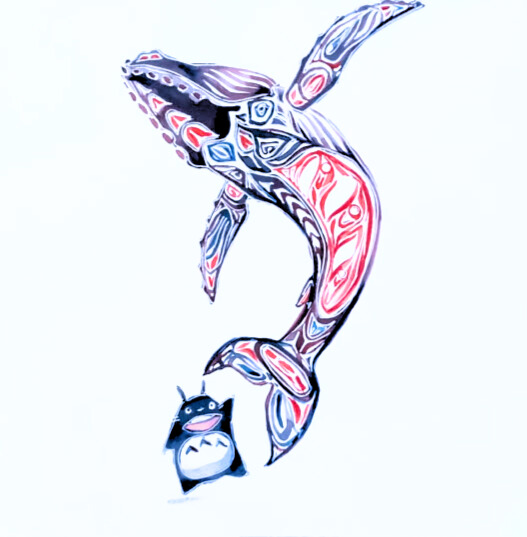 Living on the West Coast, I have the opportunity to experience and see many types of artwork from the Aboriginal people. This piece is inspired by these artists and also from Studio Ghibli’s Totoro.