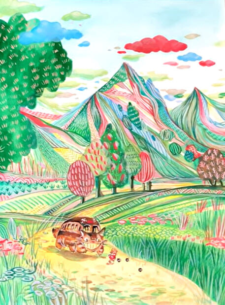 This is a whimsical piece inspired by the art of Studio Ghibli’s Totoro and Spirited Away.