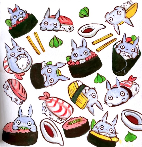 This was a fun piece where I can play with the concept of Totoro and the vast array of Japanese food that I love.