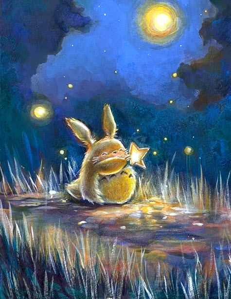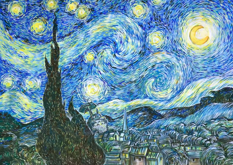 I’ve always felt a connection to Van Gogh’s Starry Night and thought that this would be a perfect opportunity to do a collab with one of my beloved Studio Ghibli’s movies, My Neighbor Totoro.