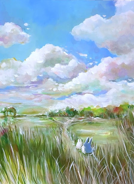 This is a fan art piece that fuses Mei from My Neighbor Totoro, with Ponyo together into one scene. Can you imagine how many fun adventures they would have together?
