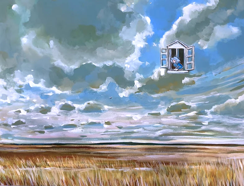 This painting is a reminder to take a break and step outside to enjoy the scenery. So often, we stay in our comfort zone and in the familiarity of our own home. Sometimes, it is important to “open a window” to peek into the un-familiar and break outside the box.
