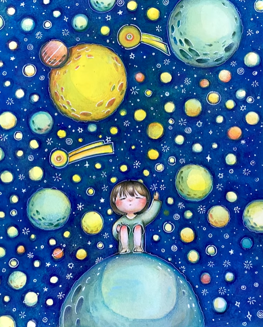 This painting is a reminder for myself to count my lucky stars everyday and to practice being gratefulness on a regular basis.