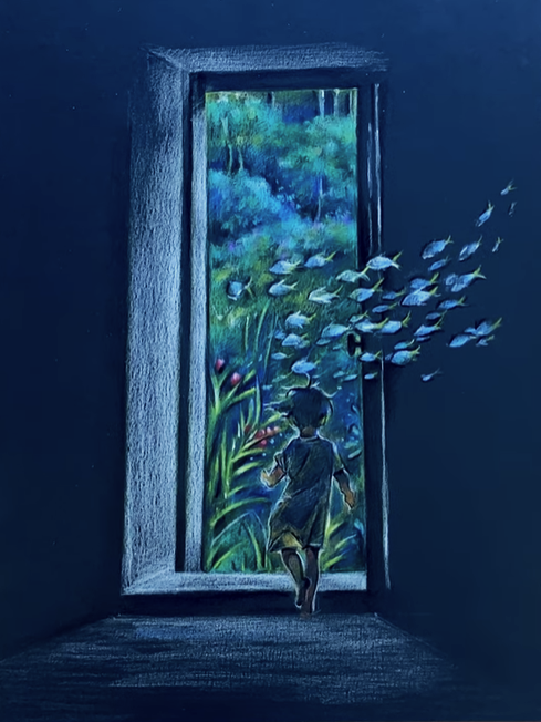Gouache, oil pencils and archival ink on watercolor paper