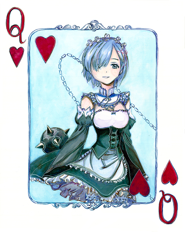 In anticipation for my debut at the Anime Revolution Convention in August, I will be releasing a series anime prints. To kick start, here is a print of Rem from one of my favorite animes for the year Re:Zero . I think it has one of the best plot lines and the illustrations are so beautiful. Rem has such a big heart in the anime, so I decided to paint her as the Queen of Hearts.