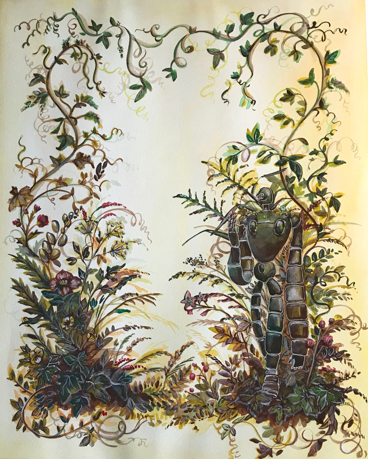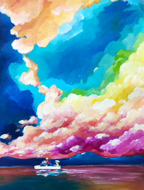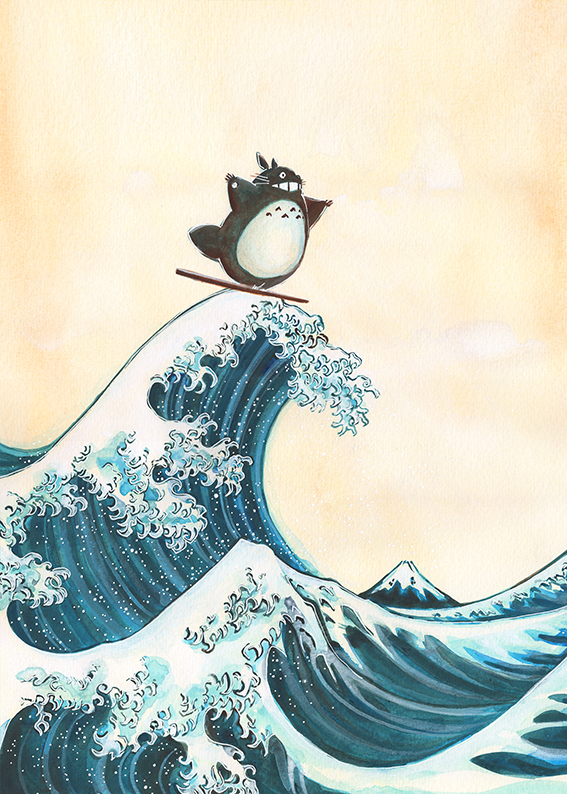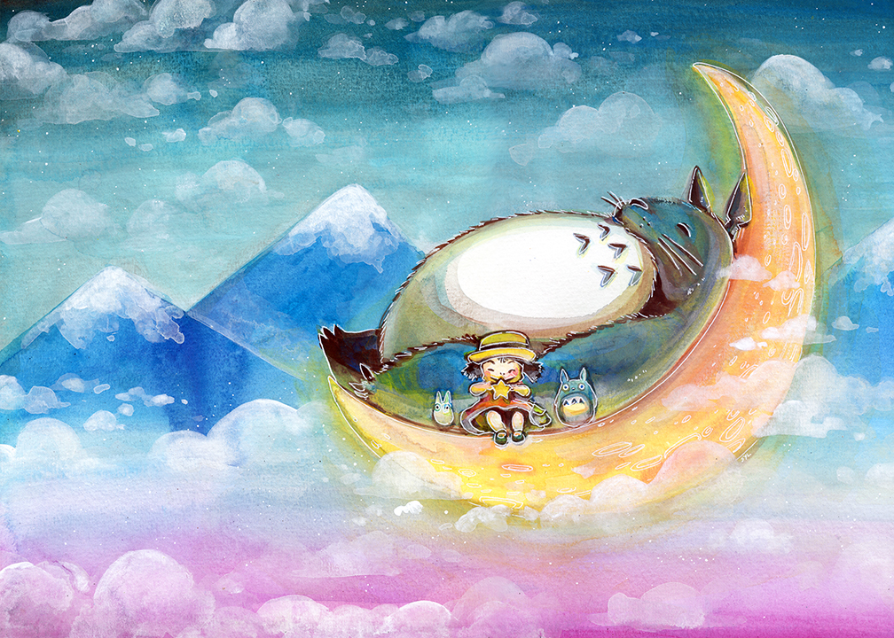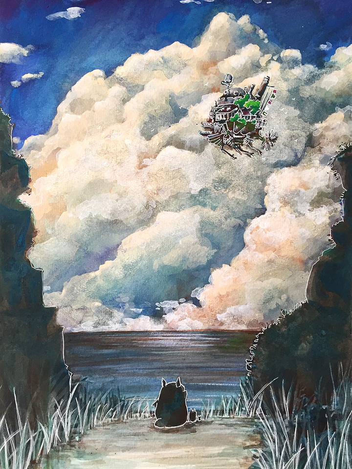 Who can resist the beautiful scenery and magnificent story lines of the art from Studio Ghibli? The characters from their productions are simply iconic. They are my all time favorite anime production company. I painted this piece while listening to piano pieces of their animes’ theme songs.