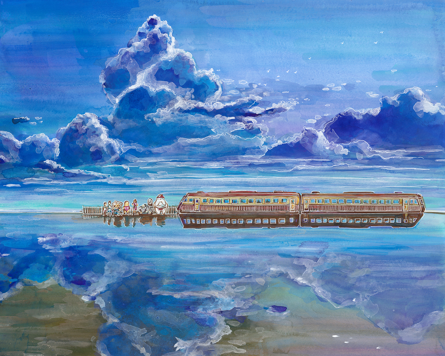 This piece is a homage to what I believe to be the best Studio Ghibli movie produced, Spirited Away. The train scene is one of the most memorable moments in the film. It is the heart of the movie and represents a significant transition. It’s one of a few scenes that has a sense of stillness and reflection.