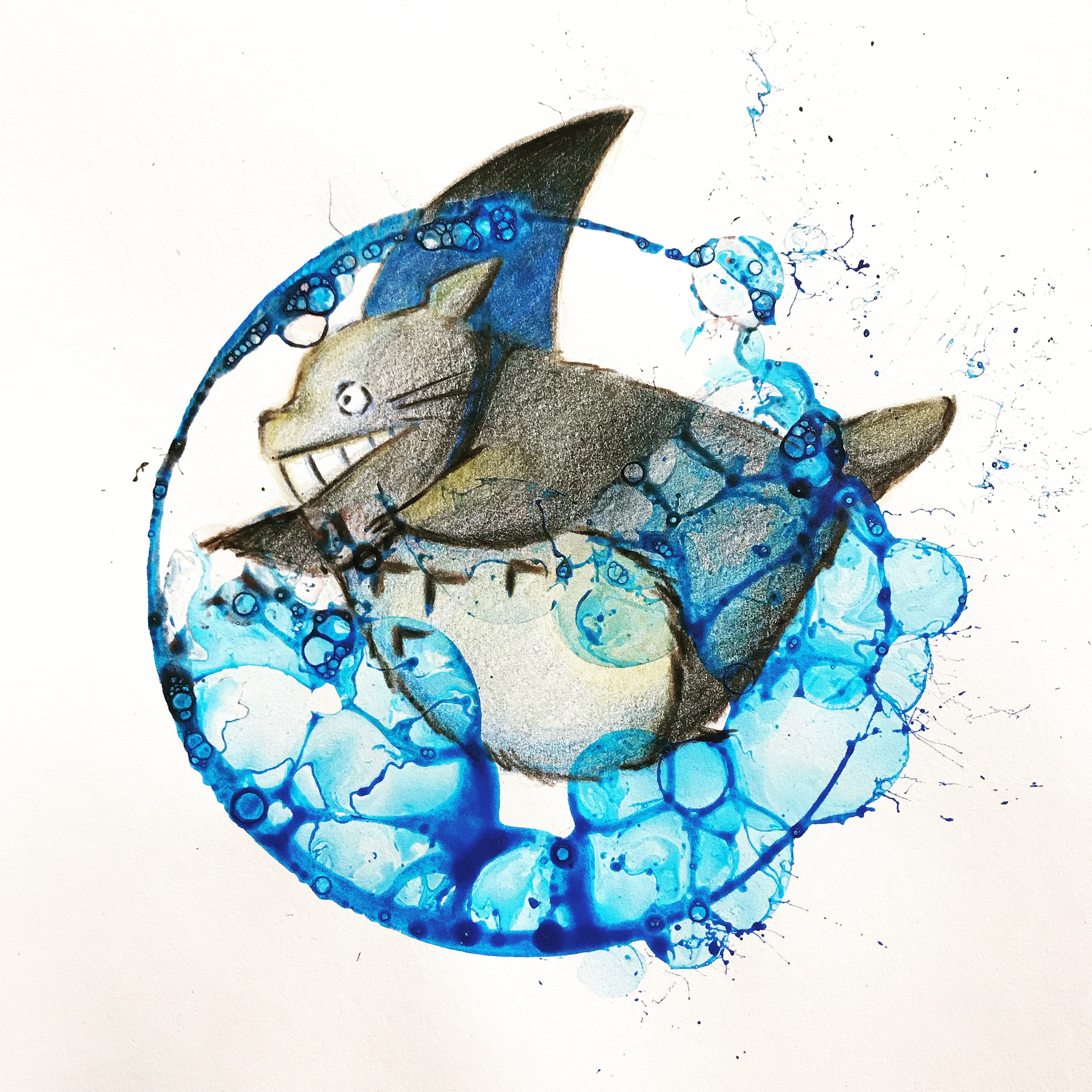 A commissioned piece of Totoro and friends having sushi together. I really enjoyed hand painting each piece of sushi.